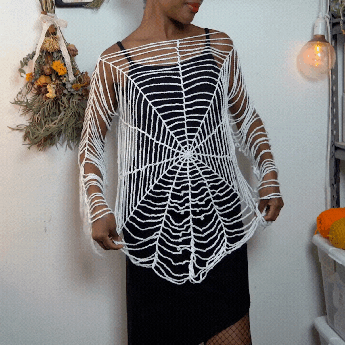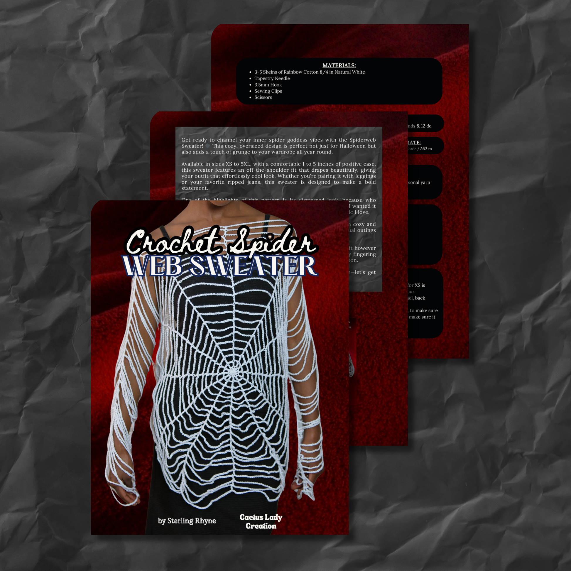 This listing is for a digital downloadable crochet pattern of the Spiderweb Sweater by Cactus Lady Creation. Perfect for adding a touch of spooky and grunge to your wardrobe, this beginner-level pattern features a cozy oversized design with a distressed spiderweb motif. The 8-page downloadable PDF includes clear, easy-to-follow instructions in US crochet terms.