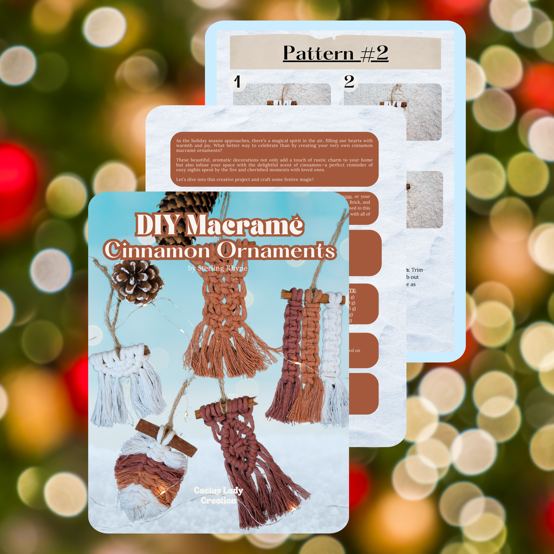 ⭐️ Make your own Macramé Cinnamon Ornaments to decorate your home with this 5 pack e-book pattern.