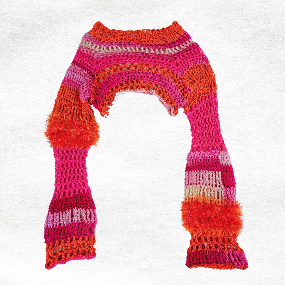 No gauge swatch is needed, making this the perfect stash-busting project for your scrap yarns. The shrug works well with medium to bulky yarns like Eyelash yarn by Ice Yarns, Facets™ by Loops & Threads, Lion Brand 24/7 Cotton, and Eddie Bauer Wool Paca.